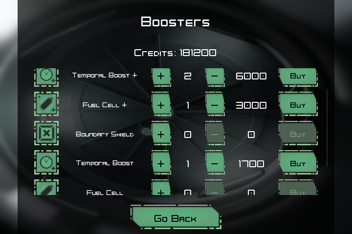 If a mission is too challenging you can use a booster to get more fuel, time, etc. Buy them using credits that you get after a mission is completed.